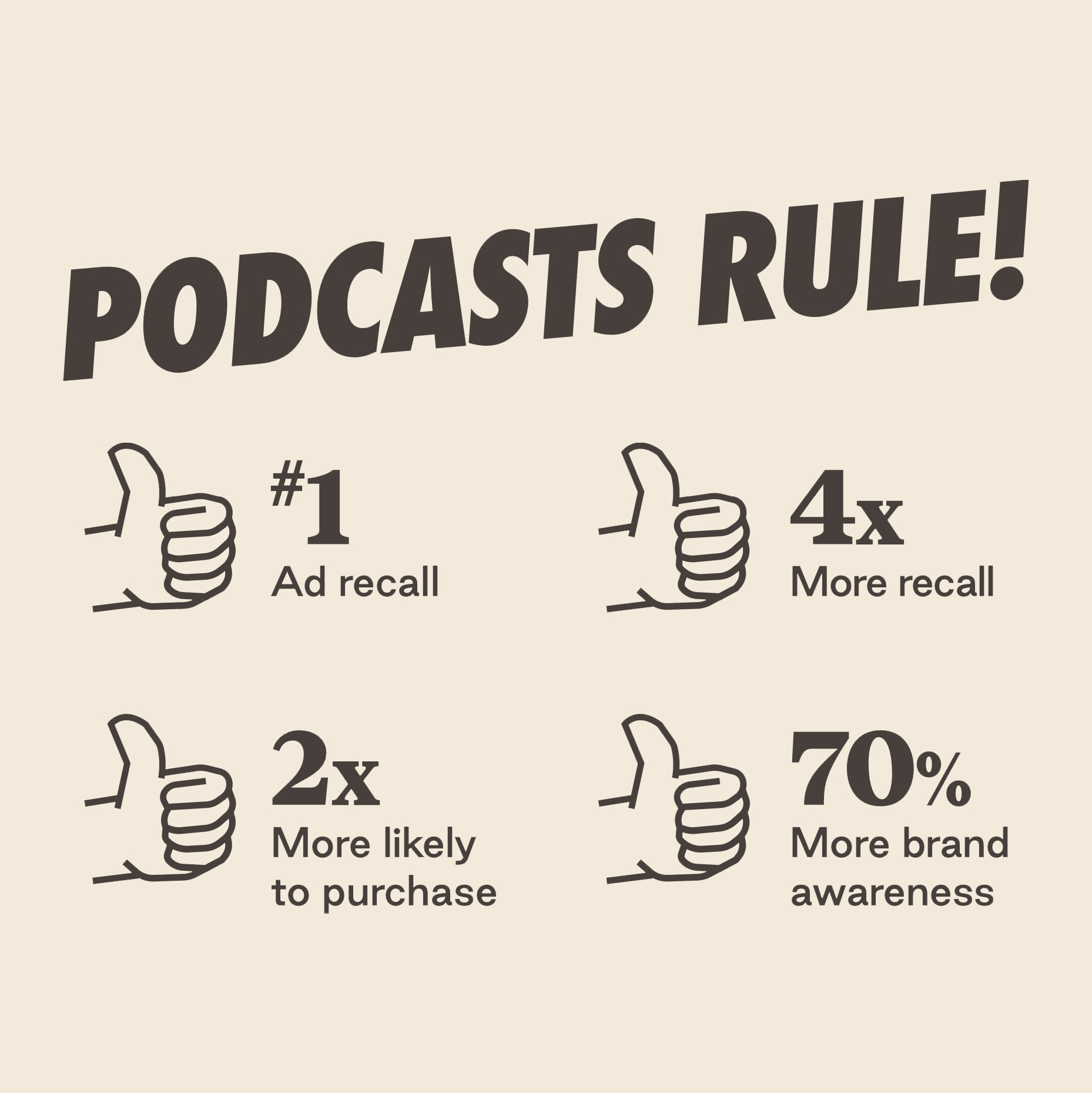 We work with brands that align with our values. Podcast listeners are highly engaged - and they listen with intent. That makes your message land better, last longer, and lead to real outcomes.